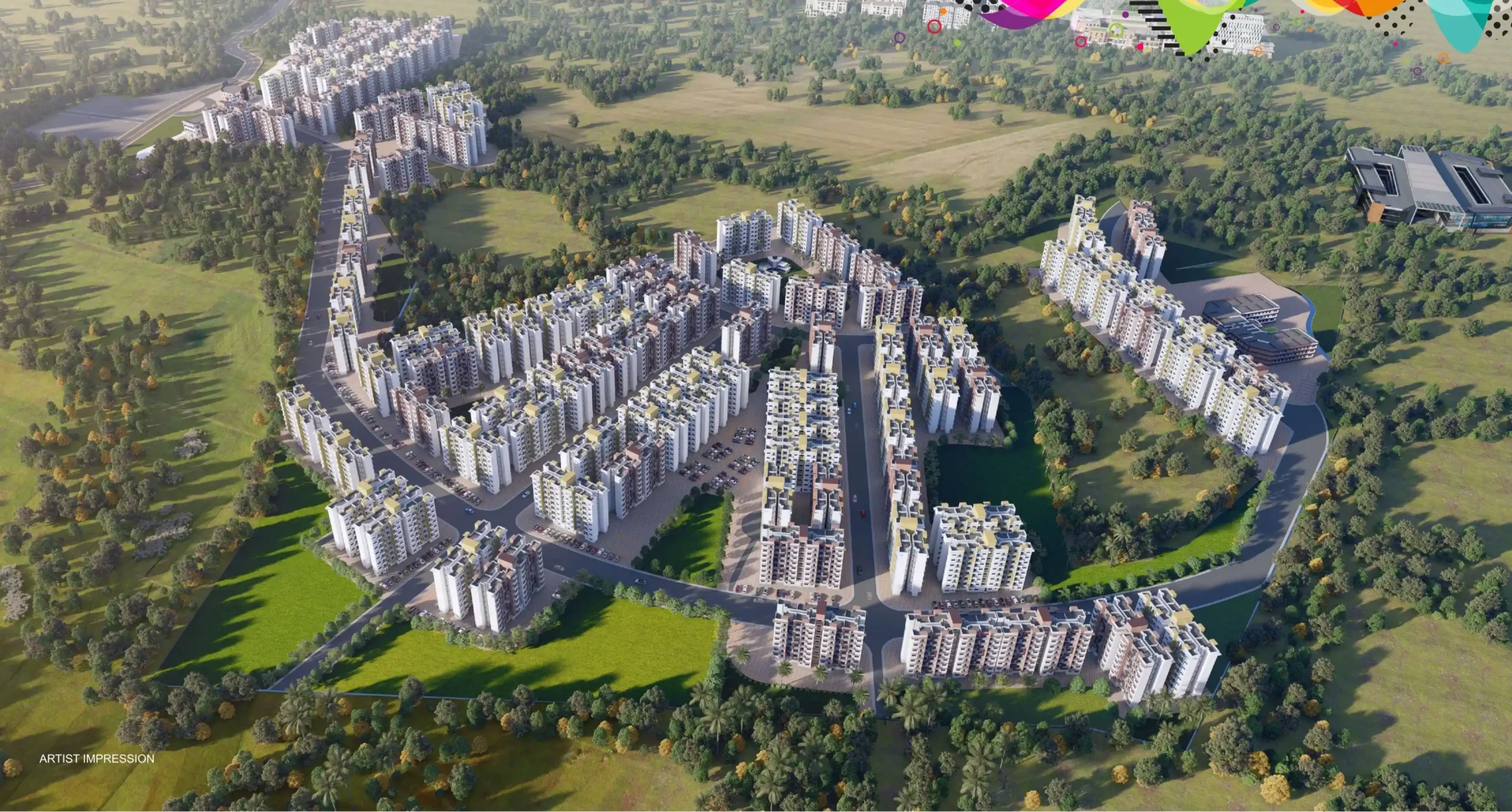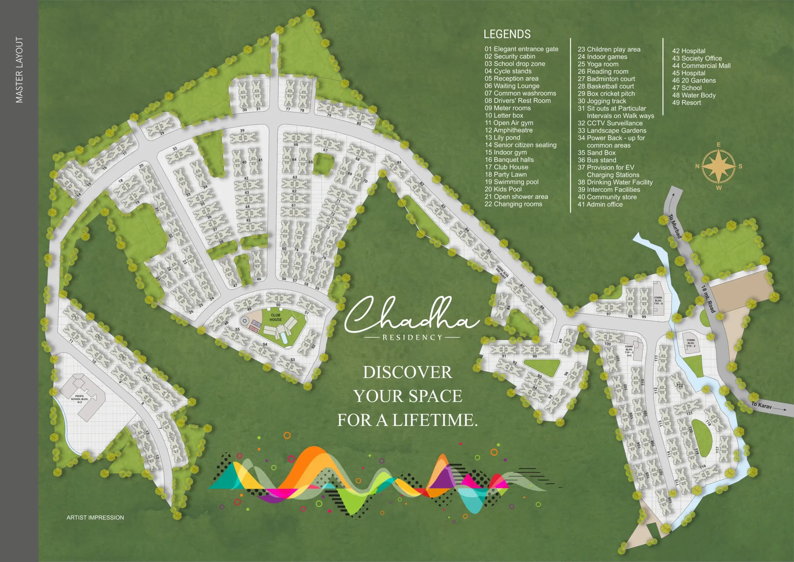 Residents get 50 plus lifestyle features like a clubhouse, swimming pool, yoga room, kids play area, senior park, garden, and CCTV security. The township also has solar backup, EV charging, and community spaces for safe and active living.